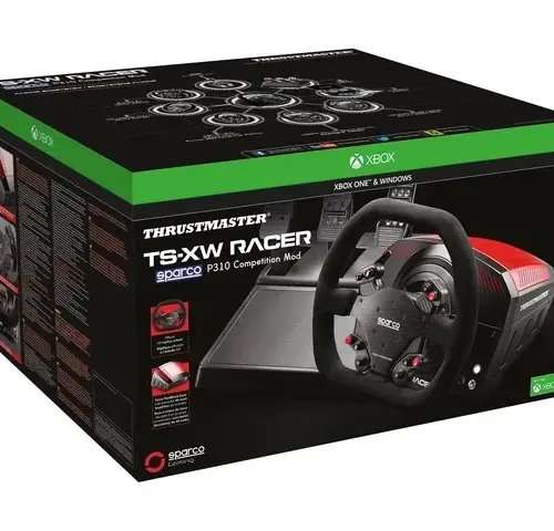 Thrustmaster presents the TS-XW Racer Sparco P310 Competition Mod racing wheel: the first milestone of the collaboration between Thrustmaster and Sparco. It is the result of a combination of our advanced technologies such as a powerful 40-watt brushless servomotor, Motor Cooling Embedded system and Turbo Power захранващ блок. It is officially licensed for Xbox One and Windows.