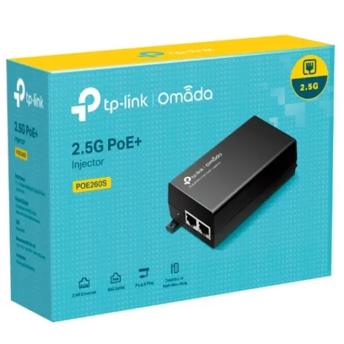TP-LINK Injector адаптер Omada 2.5G PoE+ PORT: 1× 2.5G PoE Port, 1× 2.5G Non-PoE Port POE260S