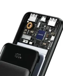 This power bank not only fulfills its primary function of charging devices, but will also surprise you with its functionality it features a digital display that informs you about the charge level. Its compact design allows you to take it anywhere, even on an airplane, in compliance with UN38.3 standards. NTC technology ensures safe charging, while comprehensive 8-level protection protects the battery from various threats, from power surges to overheating and overcharging. Feel safe using the USAMS power bank.
