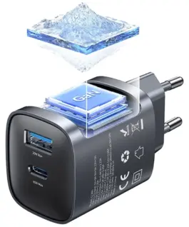 The USAMS CC290 T66 is a compact wall charger with GaN technology, delivering a total output of 45W and featuring two universal outputs: USB-C and USB-A. Thanks to GaN, it’s smaller, cooler, and more efficient than traditional power supplies, while also providing fast charging for modern devices.