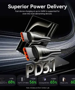 Vention кабел Cable – USB2.0 Type-C to Type-C – 5A Fast Charging, 240W, PD3.1, 1.2m – CTYBAV