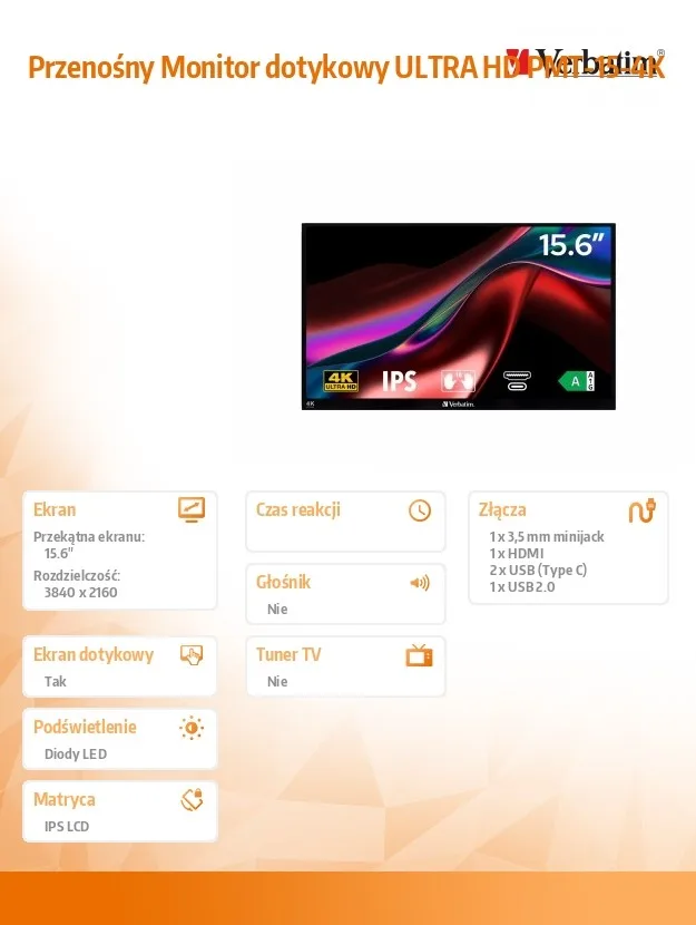 Verbatim Portable Touchscreen монитор PMT-15-4K