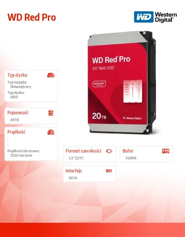 Western Digital Disc HDD червен Pro 20TB 3,5 512MB SATA III/7200rpm