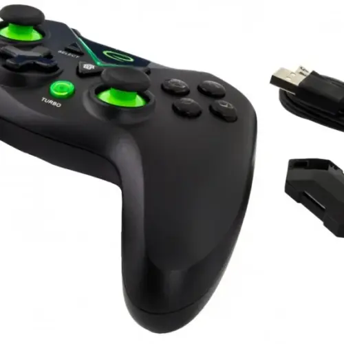 Functional wireless gamepad (2.4GHz) with vibration for PS3, XBOX ONE consoles and PCs. Works perfectly with advanced games. The ergonomic shape makes it easy to hold and does not cause hand fatigue during the game.