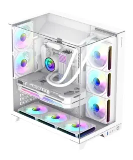 Rear: 2 x 120 mmБРОЙ 3.5″ ГНЕЗДА : 1БРОЙ 2.5″ SSD ГНЕЗДА : 3РАЗШИРИТЕЛНИ СЛОТОВЕ : 7МАКС. РАЗМЕР ОХЛАДИТЕЛ : 160 mmМАКС. РАЗМЕР ВИДЕОКАРТА : 400 mmЦВЯТ : БялДОПЪЛНИТЕЛНИ : Crafted from sturdy SPCC steel with tempered glass panels for a sleek, durable design