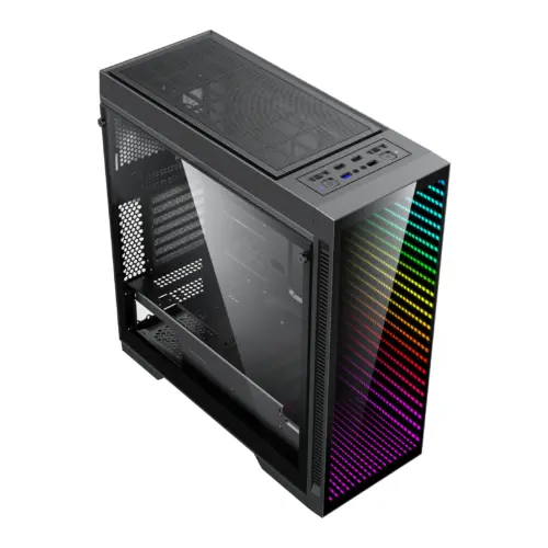 Rear: 1 x 120 mmБРОЙ 3.5″ ГНЕЗДА : 3БРОЙ 2.5″ SSD ГНЕЗДА : 4РАЗШИРИТЕЛНИ СЛОТОВЕ : 7МАКС. РАЗМЕР ОХЛАДИТЕЛ : 170 mmМАКС. РАЗМЕР ВИДЕОКАРТА : 455 mmЦВЯТ : ЧеренДОПЪЛНИТЕЛНИ : Infinity mirror with Rainbow LED lighting(addressable) on the front