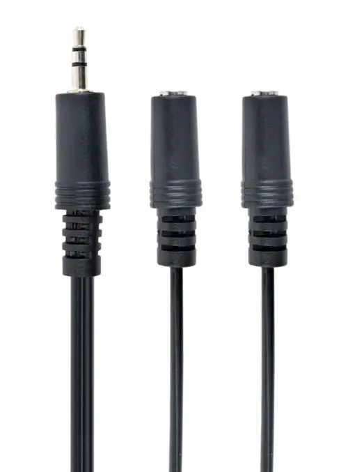 - Single 3.5 mm stereo plug to double 3.5 mm stereo sockets