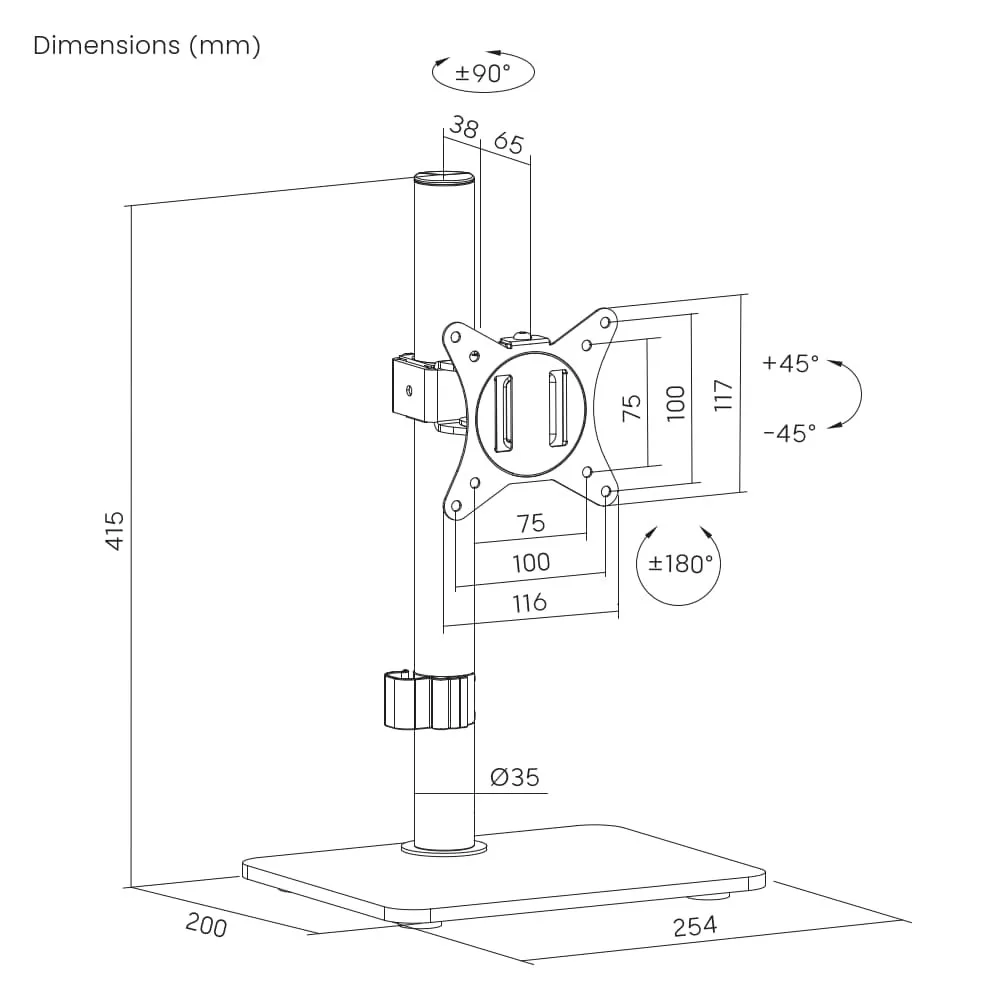 - Works with almost any LCD monitor (max. 32″ / 9 kg)