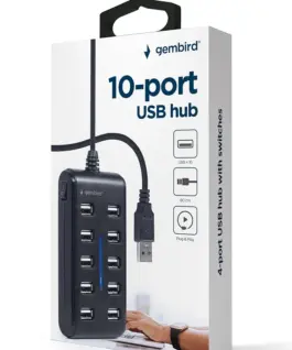 Gembird HUB USB 2.0 10 ports черен