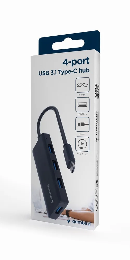 Gembird HUB USB-C черен 4 ports USB 3.1 A (Gen1)