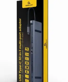 - 10-in-1 functions: USB hub, 4K HDMI and Full HD VGA, audio, Gigabit LAN port, card reader and USB Тип-C PD charging socket