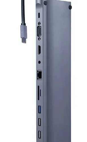 - 11-in-1 features: USB hub, 4K HDMI and Full HD VGA, audio, LAN port, card reader and USB Тип-C PD charging port