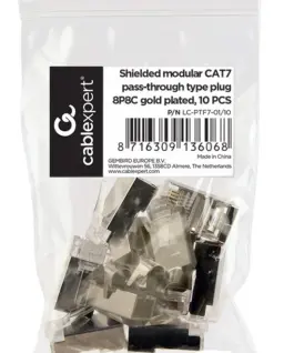 Shielded modular CAT7 pass-through type plug 15u“ gold plated, 10 pcs per bag