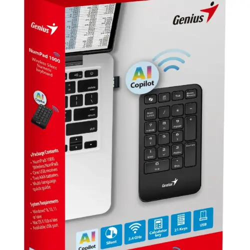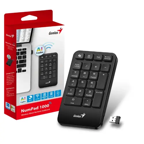 Genius цифрова безжична клавиатура кийпад Keypad Wireless NumPad 1000 – AI, 2.4G, Black