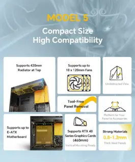 ЧеренДОПЪЛНИТЕЛНИ : Supports 420mm radiator , E-ATX and 460mm GPUs