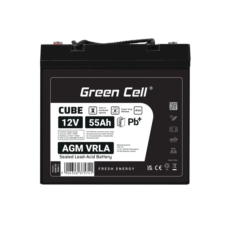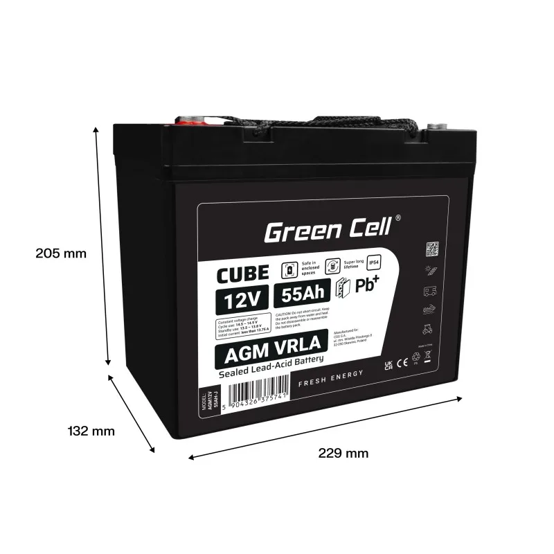 Green Cell Battery AGM VRLA 12V 55Ah IP54