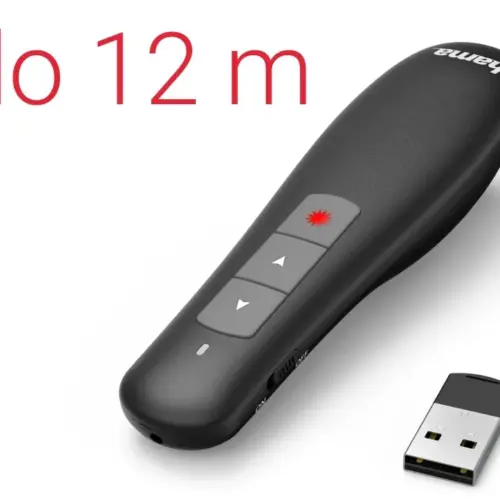 Deliver your presentations professionally with Hama’s compact and wireless laser pointer. The remote control with a range of up to 12 m allows you to freely control the presentation without having to directly use the Компютър.
