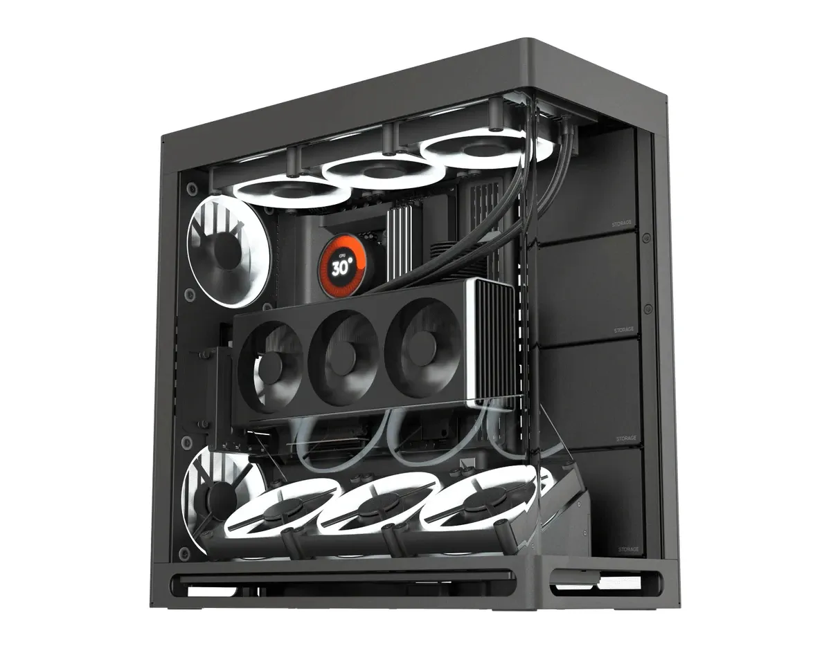 Rear: 2 x 120 / 2 x 140 mmБРОЙ 3.5″ ГНЕЗДА : 4БРОЙ 2.5″ SSD ГНЕЗДА : 8РАЗШИРИТЕЛНИ СЛОТОВЕ : 6+4МАКС. РАЗМЕР ОХЛАДИТЕЛ : 185 mmМАКС. РАЗМЕР ВИДЕОКАРТА : 470 mmЦВЯТ : ЧеренДОПЪЛНИТЕЛНИ : HAVN Hybrid Structure for optimal GPU cooling