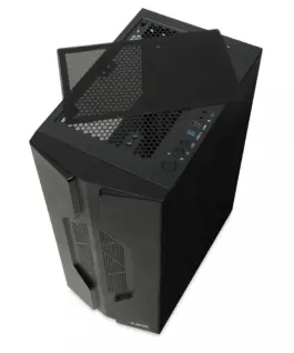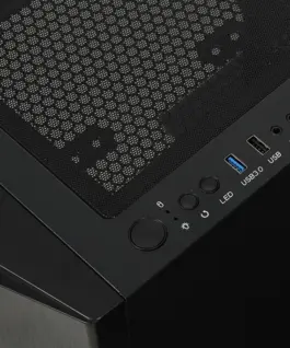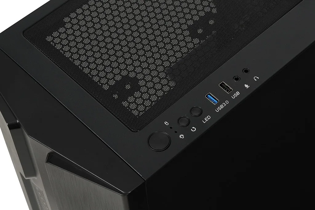 The housing is equipped with a magnetically attached filter, limiting the access of dust to the interior. The side panel is made of durable, tempered glass, providing an amazing look combined with a solid construction. There is a quiet 140 mm fan installed on the front of the case – illuminated by LEDs. At the back, the manufacturer placed one 120 mm fan, ensuring excellent heat dissipation from the inside of the case. The black, elegant structure, apart from its aesthetic values, provides a multitude of practical solutions. The power supply is separated from other components thanks to a specially designed tunnel. USB ports, switch, reset, LED lighting on/off button and HD Audio ports are located on the top of the housing.