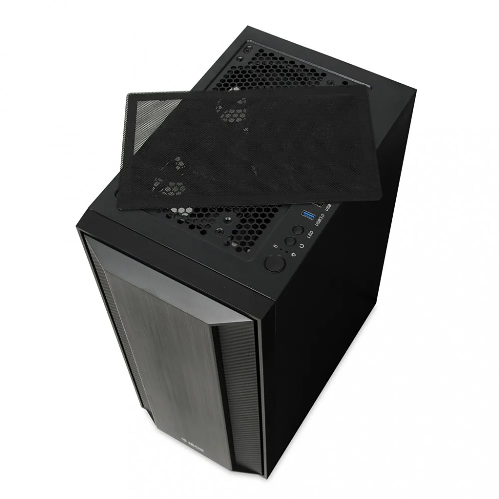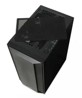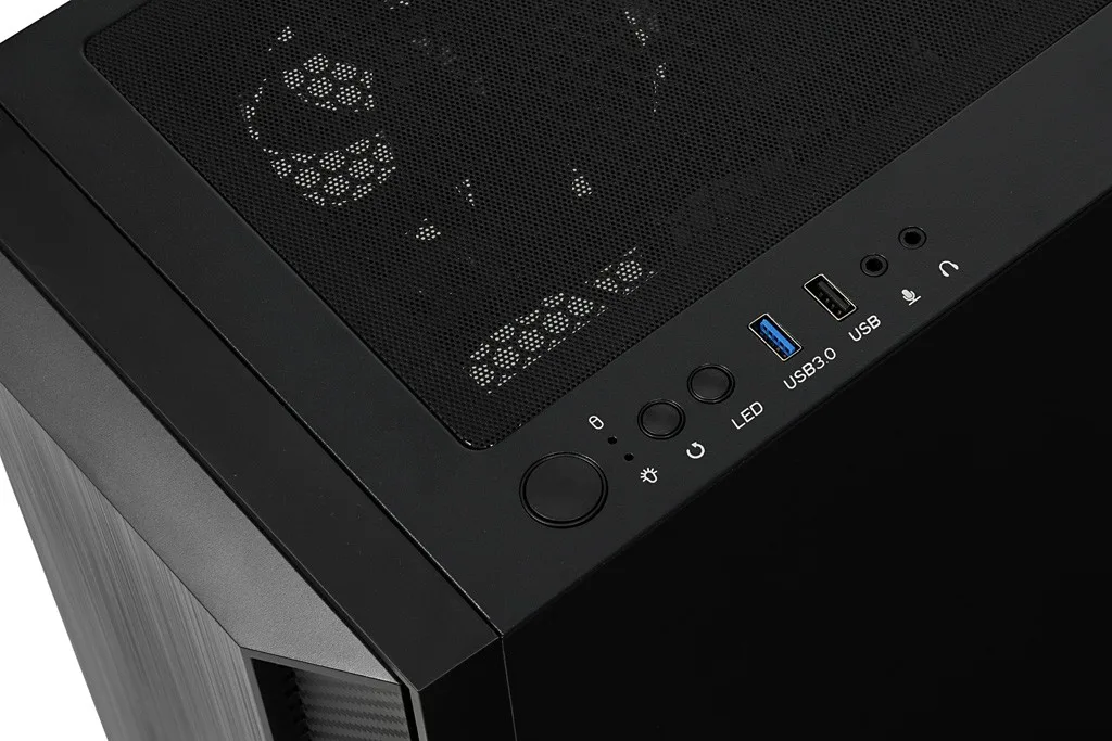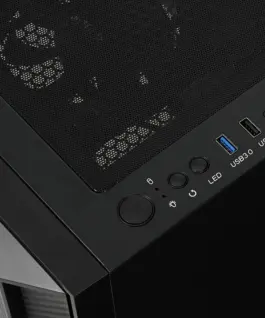 The housing is equipped with a magnetically attached filter, limiting the access of dust to the interior. The side panel is made of durable, tempered glass, providing an amazing look combined with a solid construction. Two illuminated 140 mm fans are mounted on the top of the casing, ensuring quiet operation and interesting visual effects inside the casing. There is a 120 mm fan at the back and front, ensuring excellent heat dissipation from the inside of the case. The black, elegant structure, apart from its aesthetic values, provides a multitude of practical solutions. The power supply is separated from other components thanks to a specially designed tunnel. USB ports, switch, reset, LED lighting on/off button and HD Audio ports are located on the top of the housing.