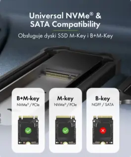 Flexible compatibility – Supports M-Key and B+M-Key SSDs for both NVMe and SATA. Fits M.2 sizes from 2230 to 2280, giving you the flexibility to use various storage types and capacities. - M.2 NVMe and SATA SSD