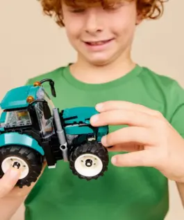 Spark the imagination of kids aged six and up with the LEGO City Tractor (60498) building set. This detailed farm vehicle features a cool turquoise Цвят scheme and four large rubber tires. Young builders can create rooftop cabs to seat the farmer minifigure and the hood to check the engine before setting off on exciting farm adventures.