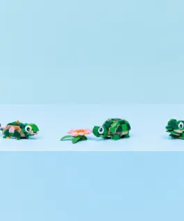 Kids can build a turtle toy with a posable head and snout, complete with a beautiful pink lily pad. Then rebuild it into a chameleon with a posable head and tail, or a frog with a posable snout. After playtime, each model can be displayed on a shelf as a display piece.