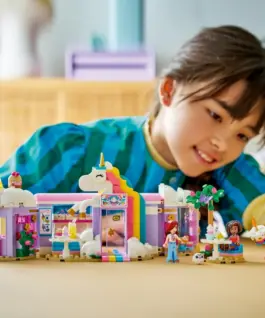 Give children aged six and up a dose of creative fun with the LEGO Friends Unicorn Café (42684) set. Girls and boys can act out their own stories in a rainbow-Цвятed café with a unicorn theme, packed with lots of cute accessories.