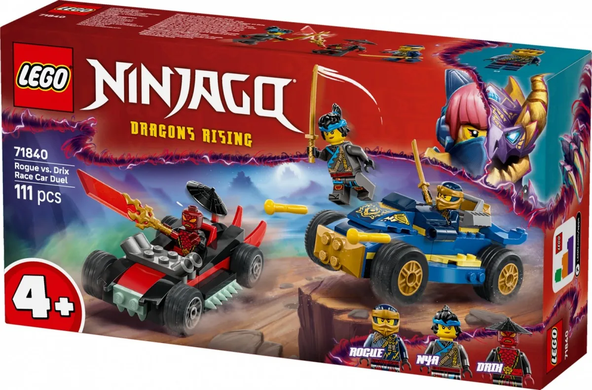 Give young ninja fans the LEGO NINJAGO Rogue vs. Drix Race Duel (71840) set, a full-action model to build and play with, inspired by the third season of the NINJAGO: Dragons Rising series. It is designed for children aged four and up, helping them learn to build and develop creativity.