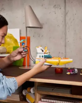 - Video game set with functions This fun LEGO toy features an easy-to-use speed sphere launcher thats built into the front of the boat, with space to load the sphere and a lever to launch it