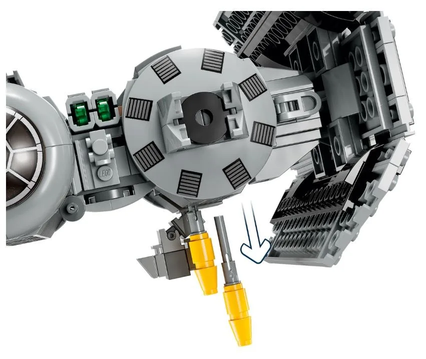 - Built for battle play The TIE Bomber has an opening minifigure cockpit, a warhead bay with torpedo-dropping function for 4 torpedoes (the set includes 6 buildable torpedoes) and 2 stud shooters