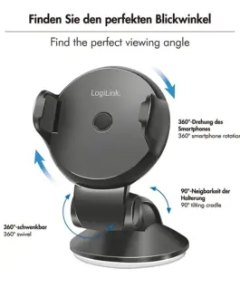Enhance your driving experience safely and comfortably. With the LogiLink Smartphone Car Holder, you can attach your mobile phone to the dashboard or windscreen in seconds. The strong suction cup mount and non-slip padding guarantee a secure hold. Thanks to 360° rotation and one-handed operation, you can always find the perfect viewing angle. Suitable for smartphones from 4.5″ to 7″, this is the future-proof solution for cars and lorries.
