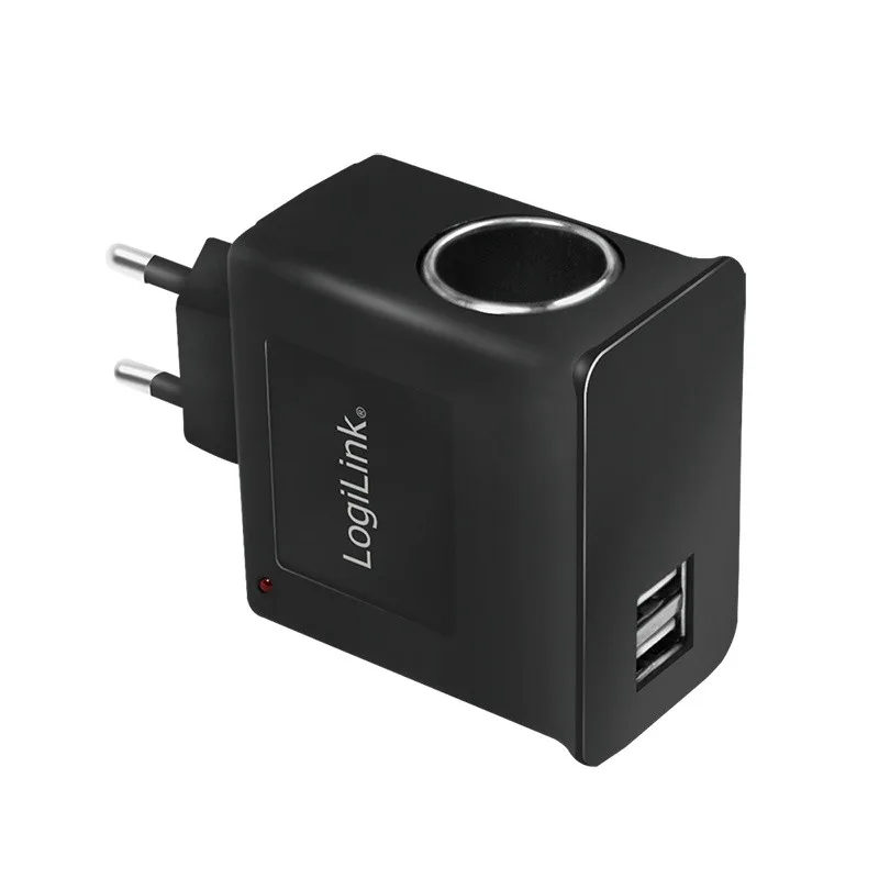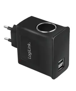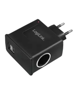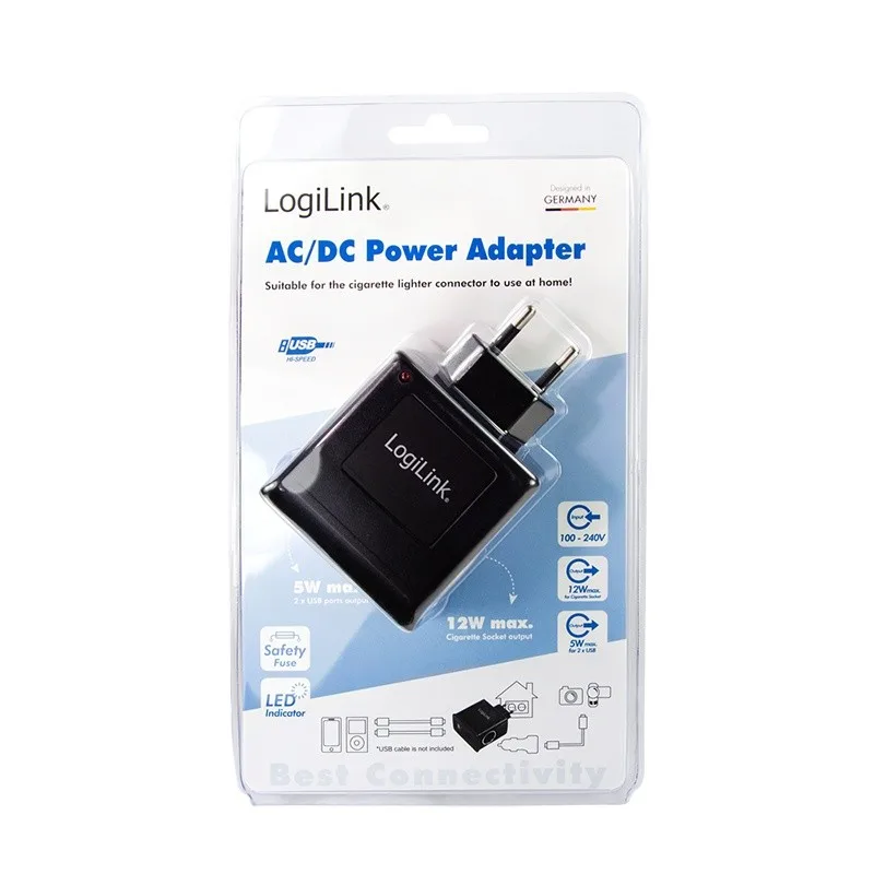 AC adapter for connection from LogiLink in 100-240V outlet with cigarette lighter socket and USB port. Suitable for the cigarette lighter connector to use at home. The power of the cigarette lighter socket is max. 12V/1A, the USB ports max. 5V/1A. The захранващ блок has an over-voltage and short circuit protection.