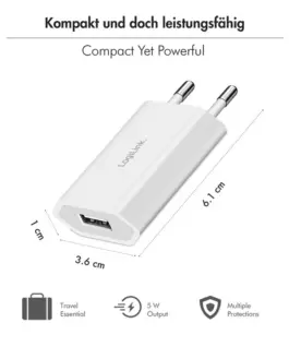 The LogiLink adapter for the power socket makes charging your USB devices such as smartphones or Таблетs child’s play: simply plug it in, connect the desired device with a USB cable and charging begins. This puts an end to cable clutter, because all you need is the adapter and a suitable USB cable.