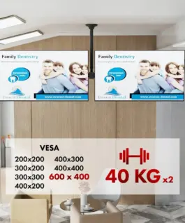 The Maclean MC-111 ceiling mount is designed to simultaneously mount two TVs on a single line, perfectly parallel to each other. Adapted for screens from 34 to 60 inches and a maximum load of 40 kg per screen, it ensures not only stability, but also maximum functionality. Compatibility with the VESA mounting system up to 600×400 mm spacing allows wide use with various TV models.