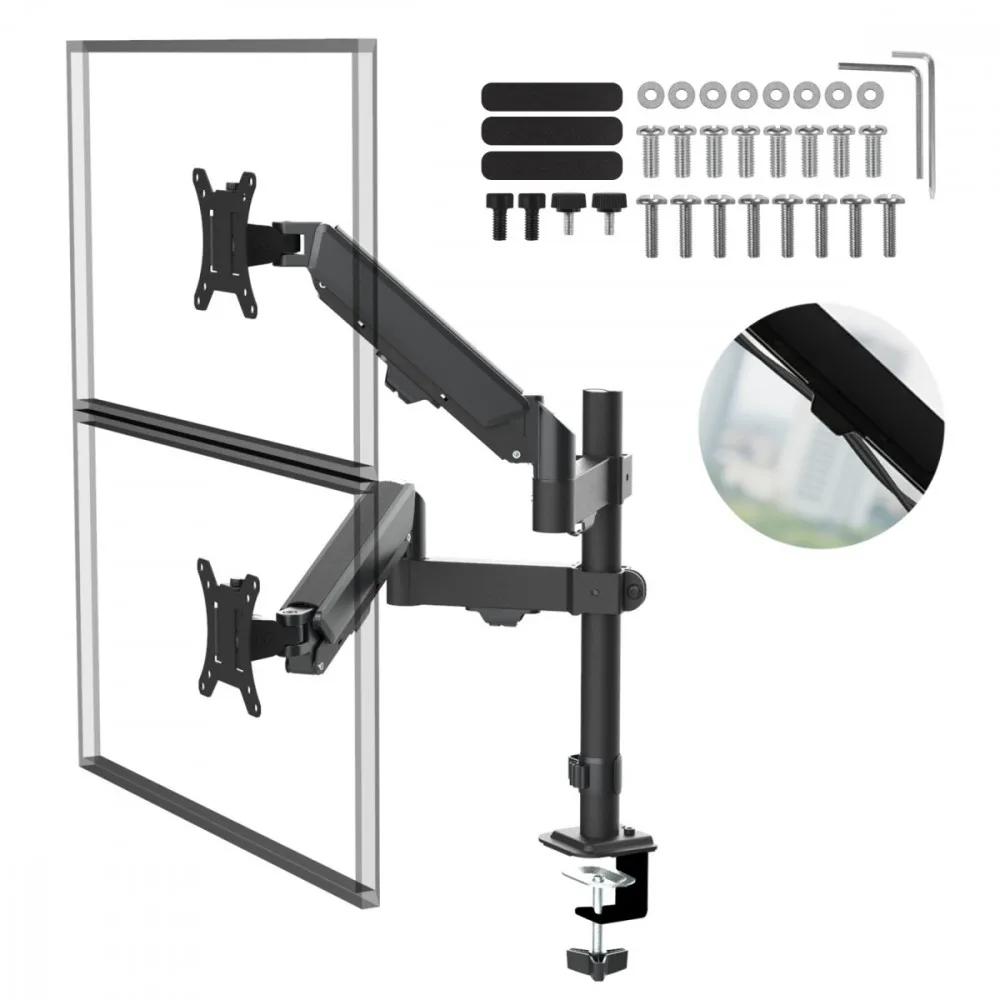 Each arm of the mount is equipped with a gas spring that allows you to adjust the height of your monitor lightly and smoothly. This allows you to raise or lower the screen with a flick of the wrist, adjusting its position to suit your needs. The gas mechanism provides stability and keeps the monitor exactly where you position it, without sagging or vibration. It’s a solution that significantly improves the ergonomics and comfort of daily work with two screens.