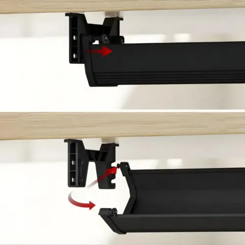 Maclean MC-106 under-desk cable organizer is a practical solution to keep your workspace tidy. Made of durable plastic, it is ideal for offices, home offices and coworking spaces. Thanks to its well-thought-out design, it allows convenient routing of power, network and other cables, eliminating the problem of tangles under the desk. The organizer can be mounted at two different heights, allowing you to adjust it to your individual needs. An additional advantage of the organizer is the easy opening system, which facilitates quick access to cables without the need to remove the entire element.