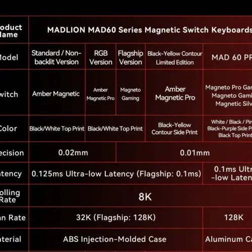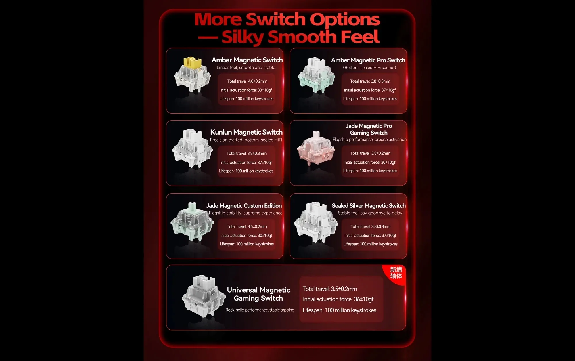 МеханичнаСУИЧОВЕ, МАРКА : GateronСУИЧОВЕ, ТЕХНОЛОГИЯ : MagneticСУИЧОВЕ, ТИП : LinearСУИЧОВЕ, ИМЕ : Gateron Jade Switch (Customized)ФАБРИЧНА СМАЗКА : ДаСУИЧОВЕ, ЖИВОТ : 100 Million keystrokesСУИЧОВЕ, ХОД ЗА АКТИВАЦИЯ : ProgrammableОБЩ ХОД НА СУИЧА : 3.5±0.2mmСИЛА ЗА АКТИВАЦИЯ : 30±10gfСМЕНЯЕМИ СУИЧОВЕ : ДАКЛАВИШИ, МАТЕРИАЛ : PBTКАПАЧКИ НА КЛАВИШИТЕ : Side PrintМАТЕРИАЛ, ОСНОВА : АлуминийЧЕСТОTА НА ПРЕДАВАНЕ : 8000 HzЧЕСТОТА НА СКАНИРАНЕ : 128 KHzЗАБАВЯНЕ ПРИ ОБРАБОТКА : 0.1 msБРОЙ КЛАВИШИ : 61ПОДСВЕТКА : RGB