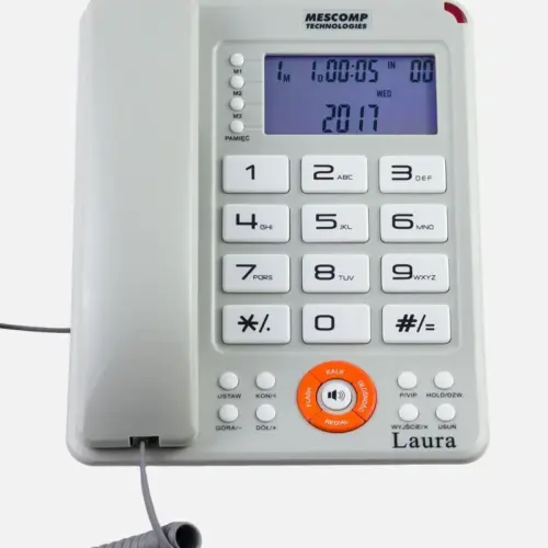 The Mescomp Laura corded telephone is a unique combination of elegance and comfort for everyday use by the elderly, disabled, and office workers.