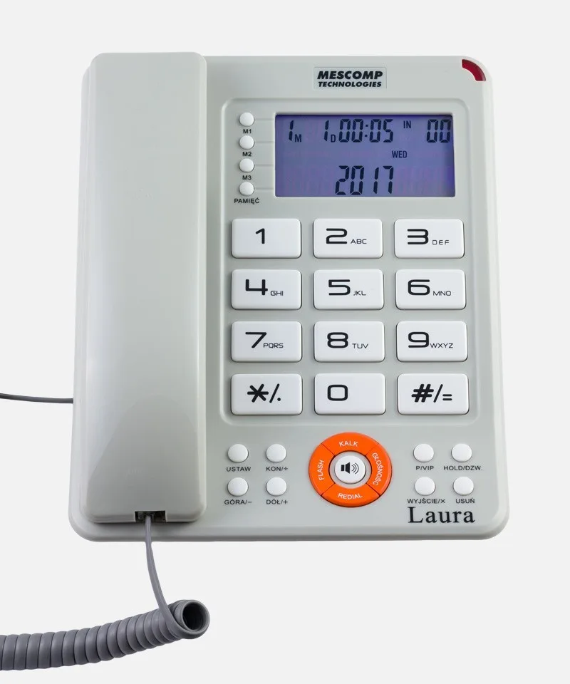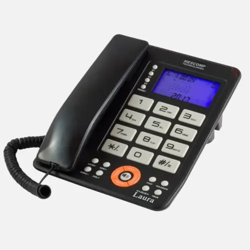The Mescomp Laura corded telephone is a unique combination of elegance and comfort for everyday use by the elderly, disabled, and office workers.