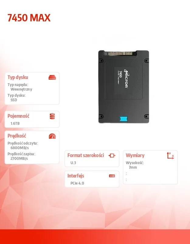 Micron SSD drive 7450 MAX 1600GB NVMe U.3 7mm Single pack