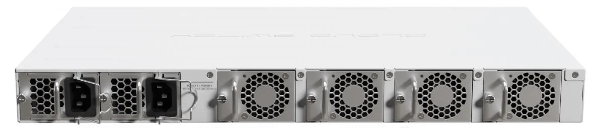 Two hot-swap power supplies support a high input voltage range: 100240 V. The board itself consumes up to 45 W of power, while the total maximum power consumption rises to 77 W with all add-ons. It may be slightly more power-hungry than the CRS504, but so would you be if you had 16 25-Gigabit ports, right?