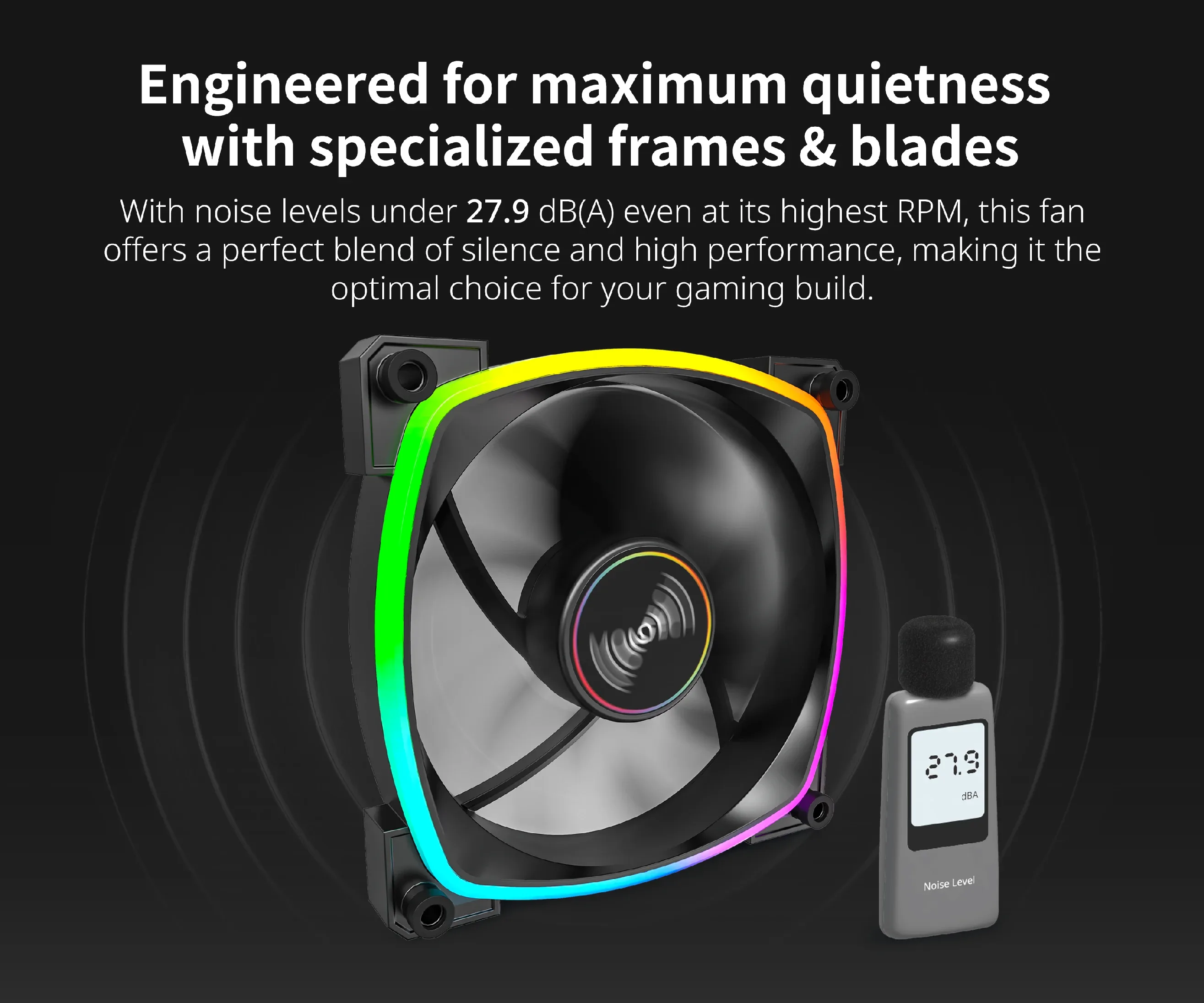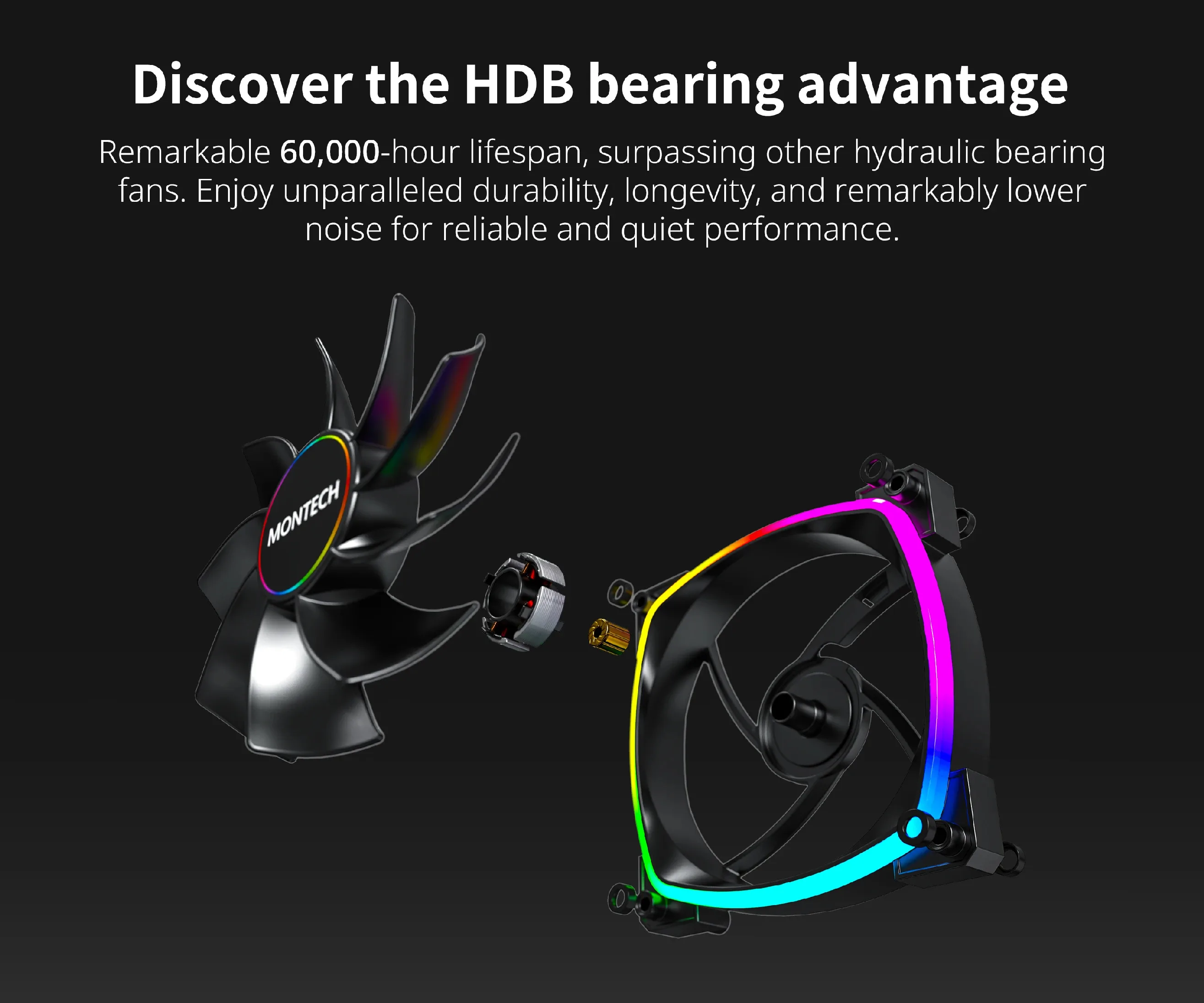 Montech вентилатор RX140 PWM, REVERSE Fan, 140mm, ARGB, Black