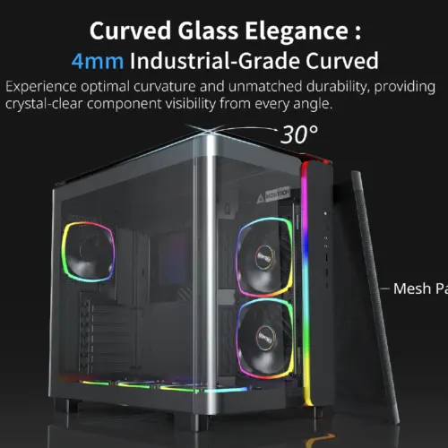 Front: 2 x 140mm (with the Mesh panel)БРОЙ DVD 5.25″ ГНЕЗДА : 0БРОЙ 3.5″ ГНЕЗДА : 5БРОЙ 2.5″ SSD ГНЕЗДА : 8РАЗШИРИТЕЛНИ СЛОТОВЕ : 7МАКС. РАЗМЕР ОХЛАДИТЕЛ : 175 mmМАКС. РАЗМЕР ВИДЕОКАРТА : 420 mmЦВЯТ : ЧеренДОПЪЛНИТЕЛНИ : 2 Front Panels – Mesh & Glass