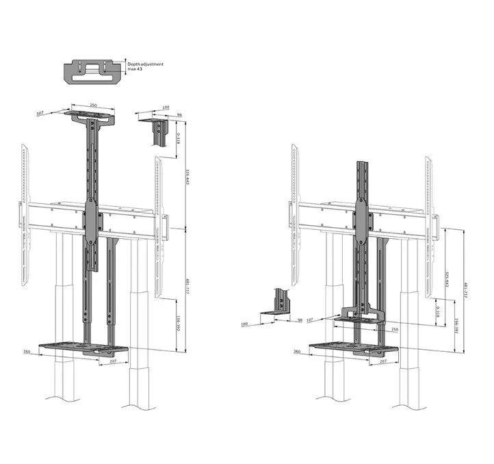 Стенна стойка за TV, FIX, черна, 600×400, 190 cm (75″), 220813
