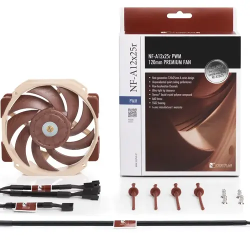 ПРОИЗВОДИТЕЛ : Noctua КОД НА ПРОИЗВОДИТЕЛЯ : NF-A12x25r-PWM РАЗМЕР(мм) : 120 x 120 x 25 mmОБОРОТИ В МИНУТА(rpm) : 450-2000 RPMВОЛТАЖ : 12 V DCТИП ЛАГЕРУВАНЕ : SSO2 BearingВЪЗДУШЕН ПОТОК : 102.1 m3/hВЪЗДУШНО НАЛЯГАНЕ : 2.34 mmH2OАМПЕРАЖ (A) : 0.14 AМОЩНОСТ (W) : 1.68 WНИВО НА ШУМ : 22.6 dBAКОНЕКТОР : 4 pin PWMЖИВОТ В ЧАСОВЕ : 150000ДРУГИ : Custom hole spacing of 93x83mm