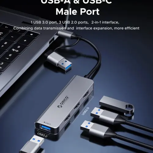 Orico хъб HUB USB-C/USB-A 7 port – USB-C x 2, USB3.0 x 1, USB2.0 x 4, Aluminium – YSA7-U3-GY