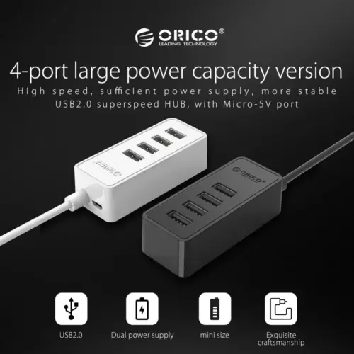 Orico хъб USB2.0 HUB 4 port – USB/Micro USB input, Black – W5P-U2-030-BK-EP