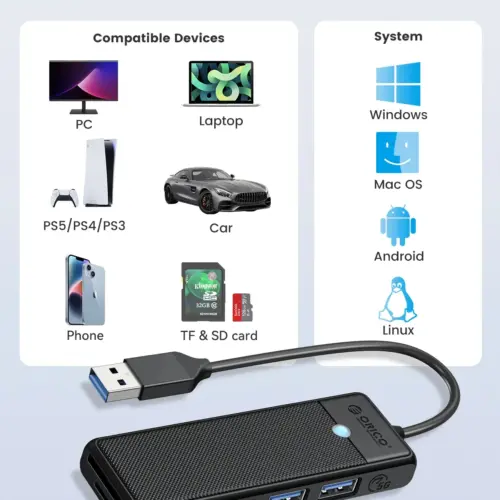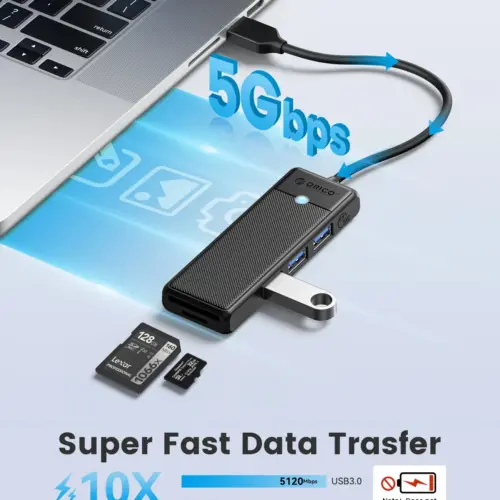 Orico хъб USB3.0 HUB – 3 x USB3.0, SD, TF – PAPW3AT-U3-015-BK