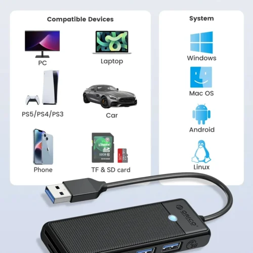Orico хъб USB3.0 HUB White – 3 x USB3.0, SD, TF – PAPW3AT-U3-015-WH